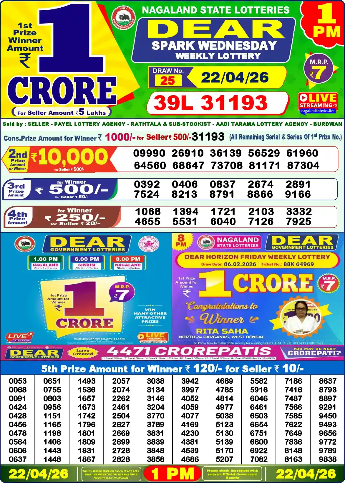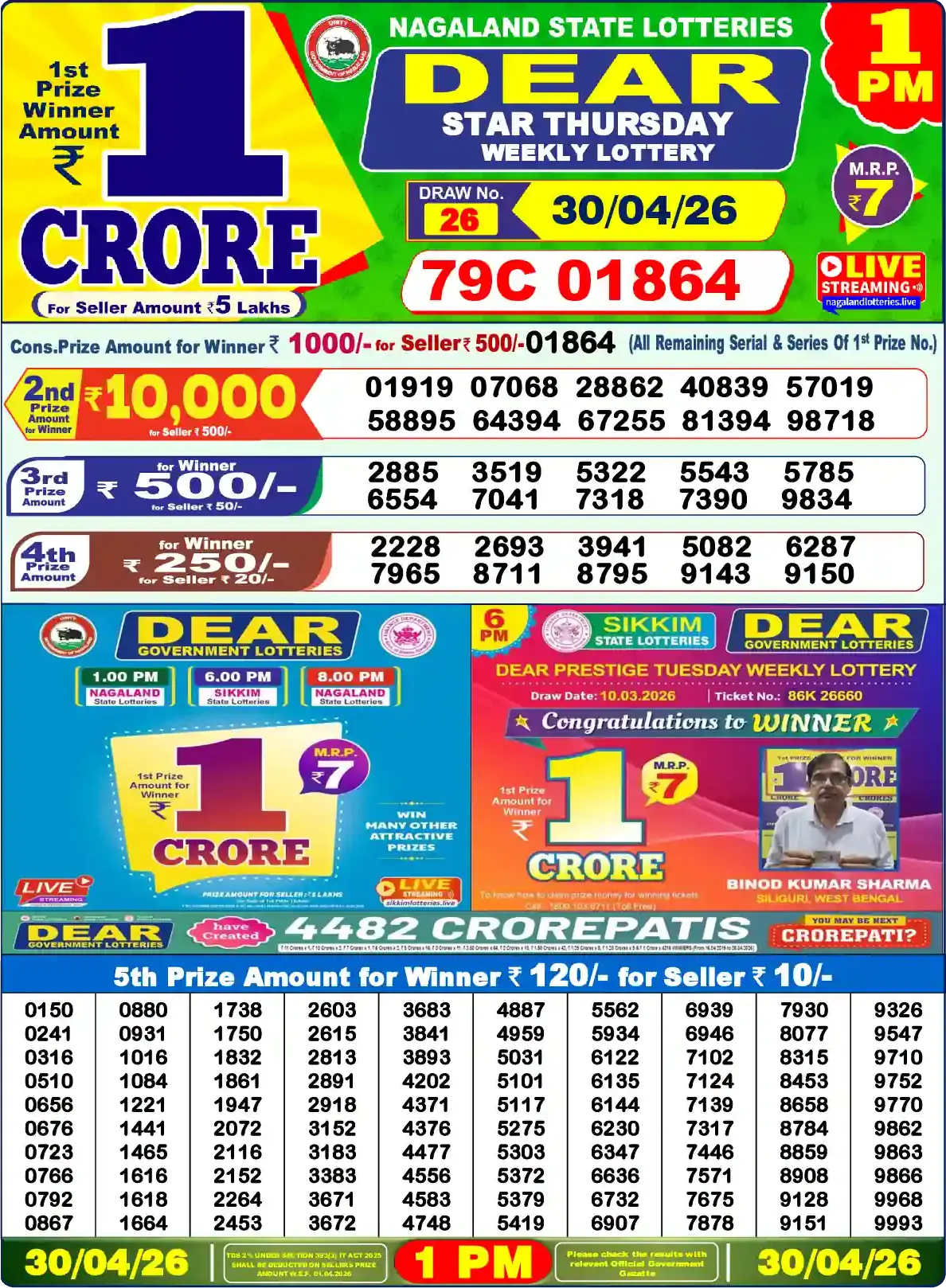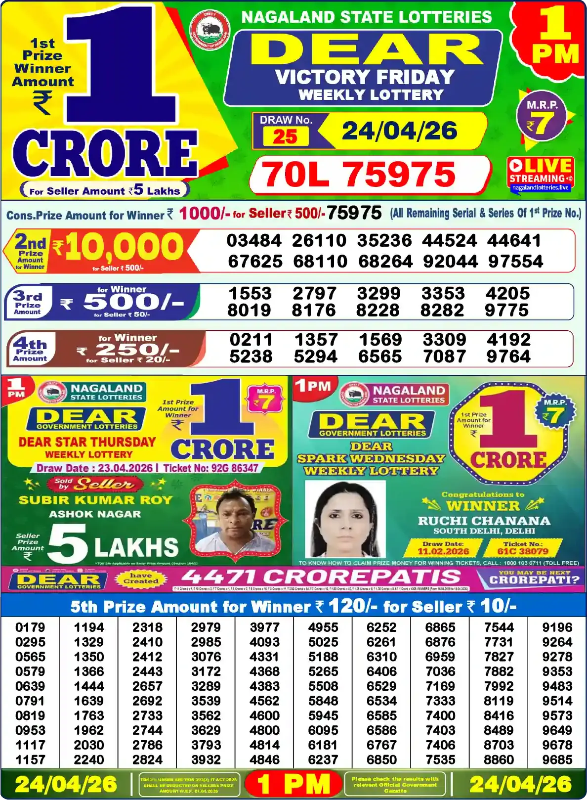 Results are published via Dear Lottery charts, Dhankesari, and government bulletins.