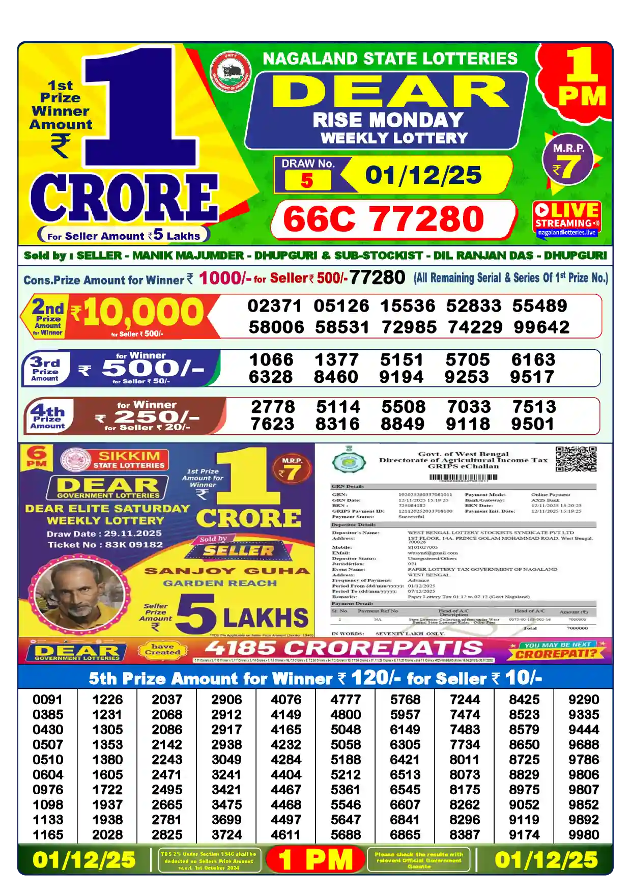 | 5th Prize | 0200, 0357, 0497, 0507, 0864, 0913, 1007, 1074, 1089, 1429, 1457, 1699, 1709, 1713, 1734, 1770, 1781, 1892, 2194, 2525, 2630, 2727, 2814, 2816, 2822, 2928, 3083, 3112, 3153, 3273, 3293, 3485, 3650, 3652, 3836, 3839, 3925, 3934, 3967, 4018, 4113, 4278, 4452, 4483, 4551, 4667, 4809, 4876, 4890, 5189, 5219, 5243, 5412, 5537, 5789, 5899, 6135, 6202, 6211, 6221, 6226, 6274, 6291, 6346, 6440, 6569, 6695, 6904, 6949, 6950, 6958, 7135, 7373, 7533, 7690, 7730, 7831, 7891, 8106, 8275, 8314, 8376, 8461, 8689, 8827, 8965, 9090, 9216, 9412, 9423, 9502, 9503, 9528, 9629, 9652, 9694, 9737, 9767, 9940, 9962 |