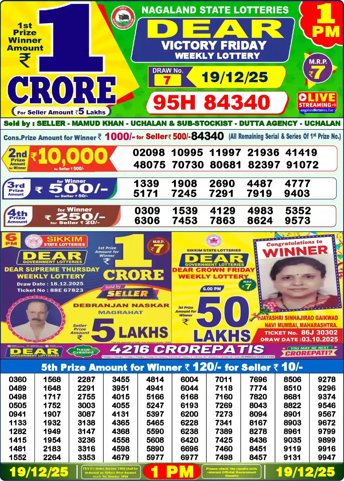 | 3rd Prize | 1339, 1908, 2690, 4487, 4777, 5171, 7245, 7291, 7919, 9403 |