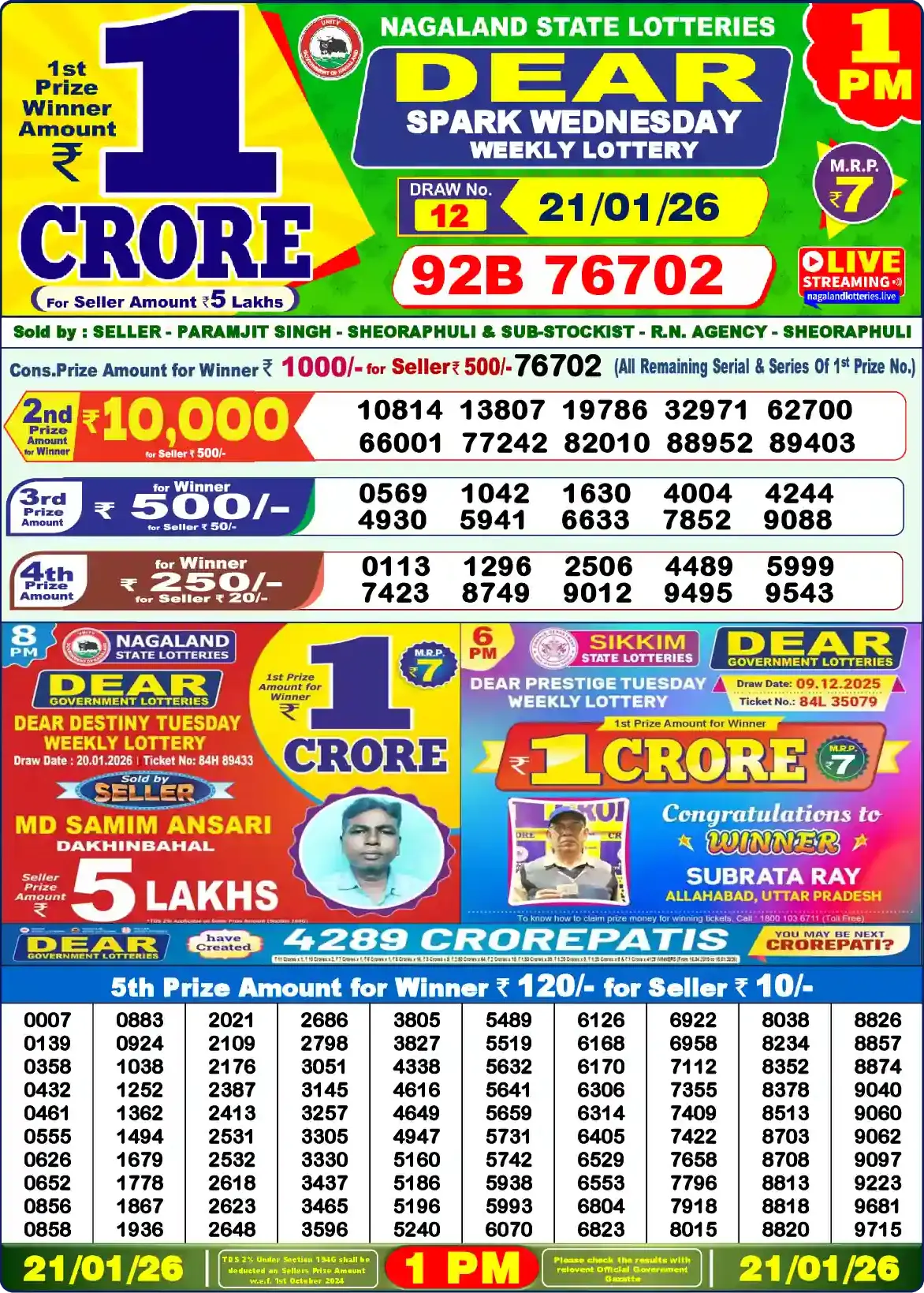 | 4th Prize | 0429, 0588, 0629, 1693, 2662, 3501, 5612, 6330, 8081, 9841 |