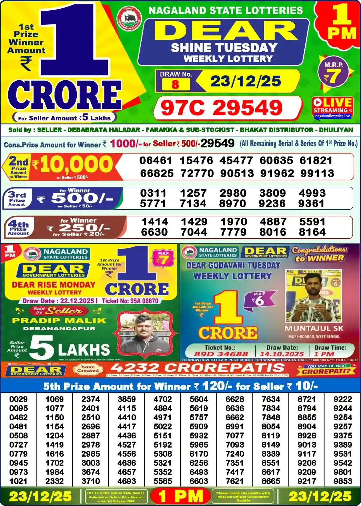 | 3rd Prize | 0311, 1257, 2980, 3809, 4993, 5771, 7134, 8970, 9236, 9361 |