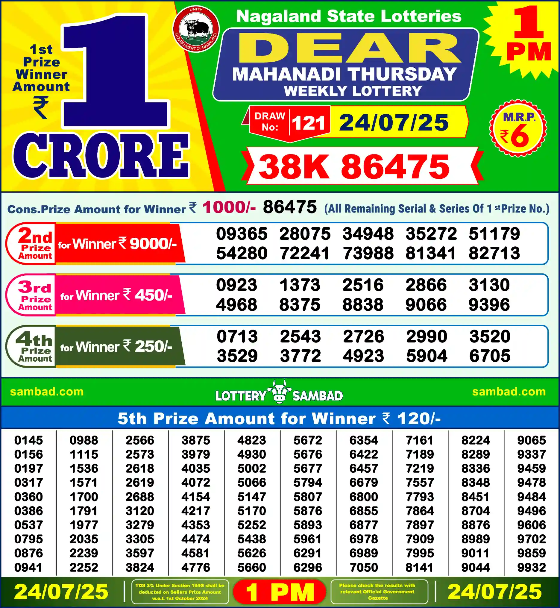 | 1st Prize | 38K 86475 |