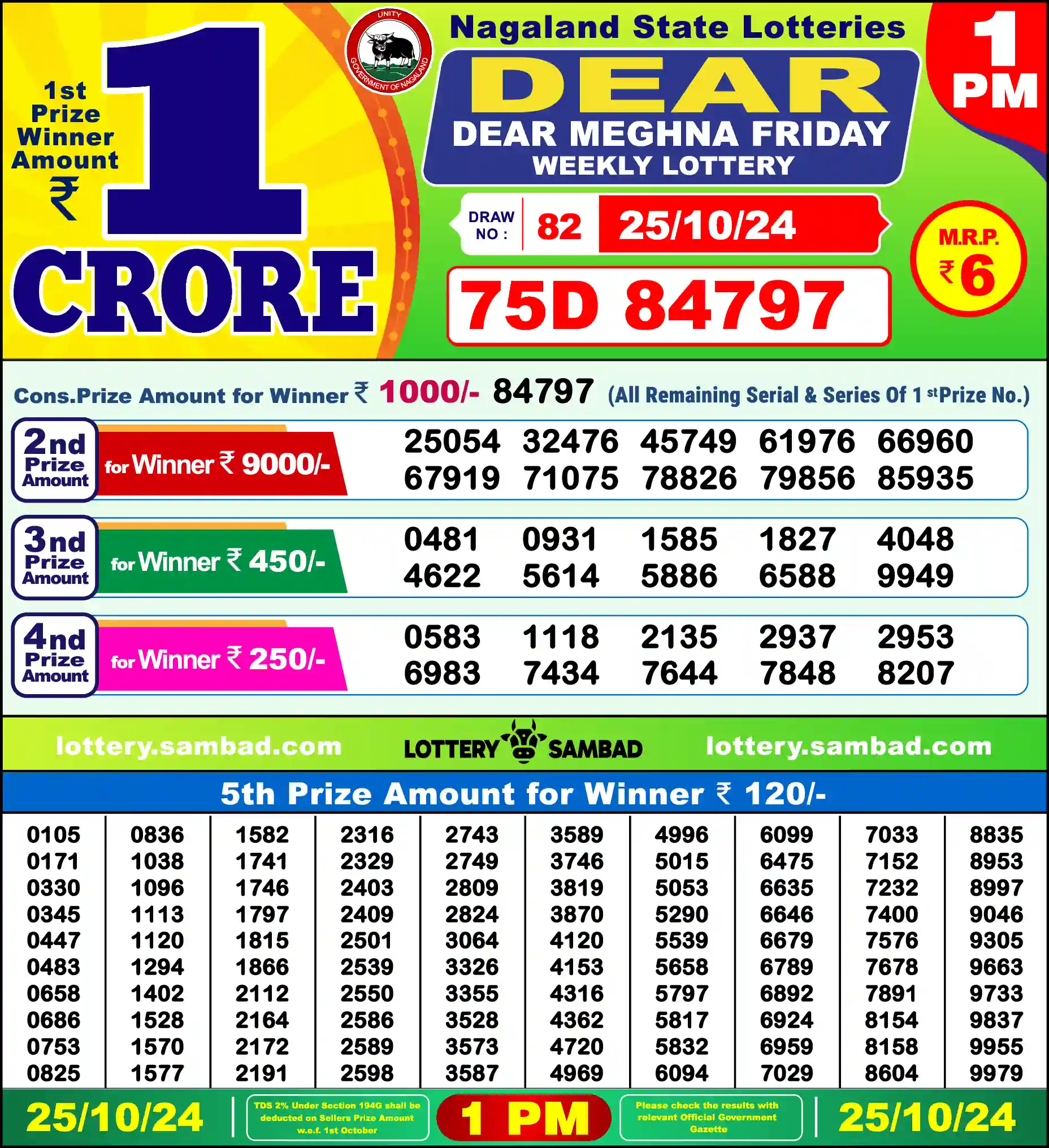 | 5th Prize | 0105, 0171, 0330, 0345, 0447, 0483, 0658, 0686, 0753, 0825, 0836, 1038, 1096, 1113, 1120, 1294, 1402, 1528, 1570, 1577, 1582, 1741, 1746, 1797, 1815, 1866, 2112, 2164, 2172, 2191, 2316, 2329, 2403, 2409, 2501, 2539, 2550, 2586, 2589, 2598, 2743, 2749, 2809, 2824, 3064, 3326, 3355, 3528, 3573, 3587, 3589, 3746, 3819, 3870, 4120, 4153, 4316, 4362, 4720, 4969, 4996, 5015, 5053, 5290, 5539, 5658, 5797, 5817, 5832, 6094, 6099, 6475, 6635, 6646, 6679, 6789, 6892, 6924, 6959, 7029, 7033, 7152, 7232, 7400, 7576, 7678, 7891, 8154, 8158, 8604, 8835, 8953, 8997, 9046, 9305, 9663, 9733, 9837, 9955, 9979 |